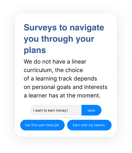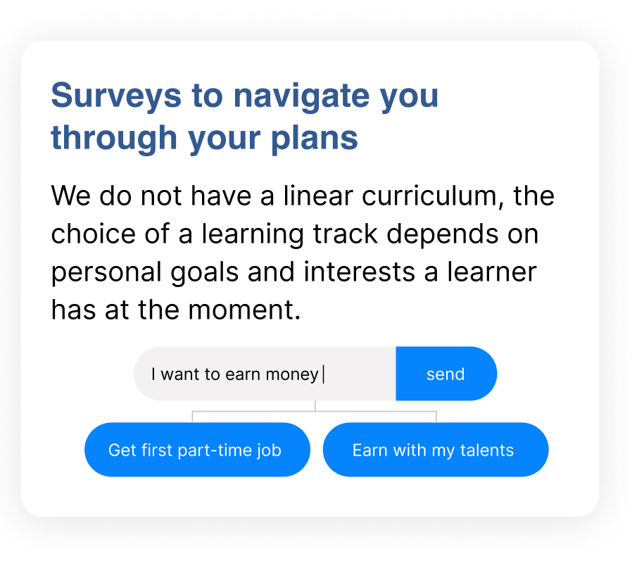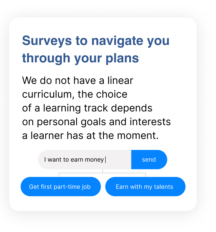 Oh, we know where this question came from =) Our experience of schooling tells us that we have to go to a special place, isolate ourselves there for a certain time, perform tasks that are hardly connected to the rest of our life to achieve formal results, and that is called learning. But the learning we offer to you is different! You come to us with your own current needs and questions, being offered tasks and activities crucial to succeed in real life, which you can fulfil while at school, or having fun with friends, or talking to your parents, or reflecting your day in the evening. Of course, we have recommended deadlines for topics and tasks, which help to structure yourself. But inside deadlines you are free to plan your own schedule. We expect that about 1 hours a day would be added to your ordinary schedule when you enter our learning environment and start your financial improvement journey with us.